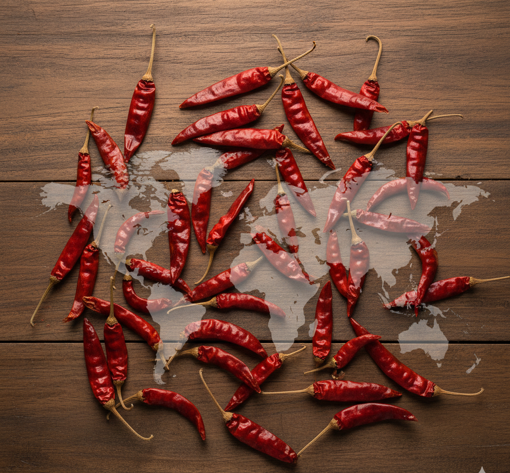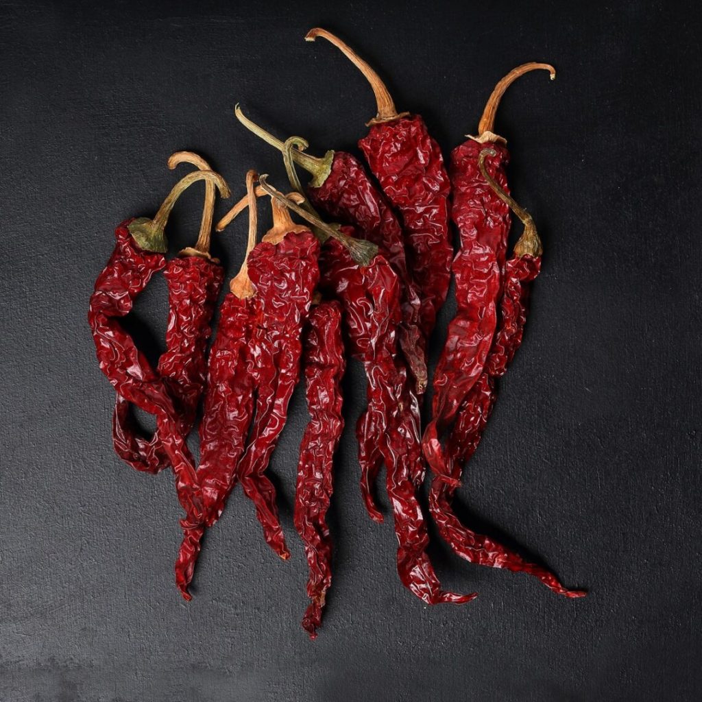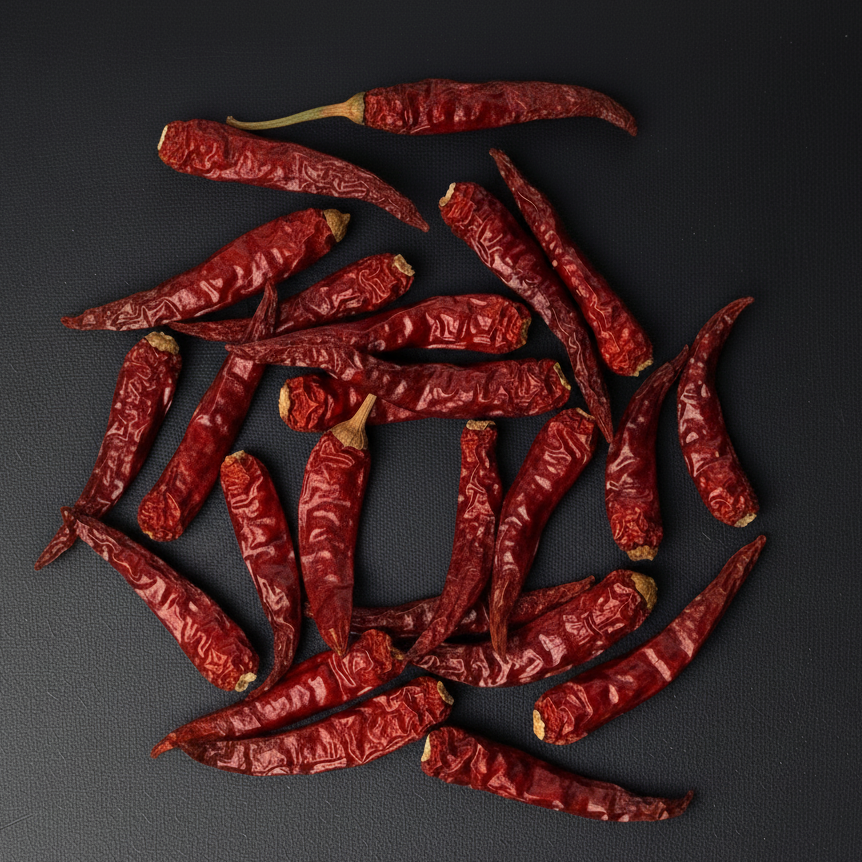 Deep red, mildly spicy chillies with a rich aroma and natural wrinkled texture — perfect for authentic flavor and color in cuisines.